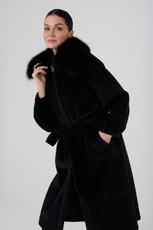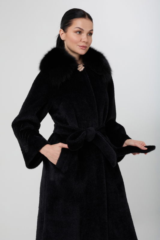 Fermuarlı Kapşonlu Angora Kaban SİYAH