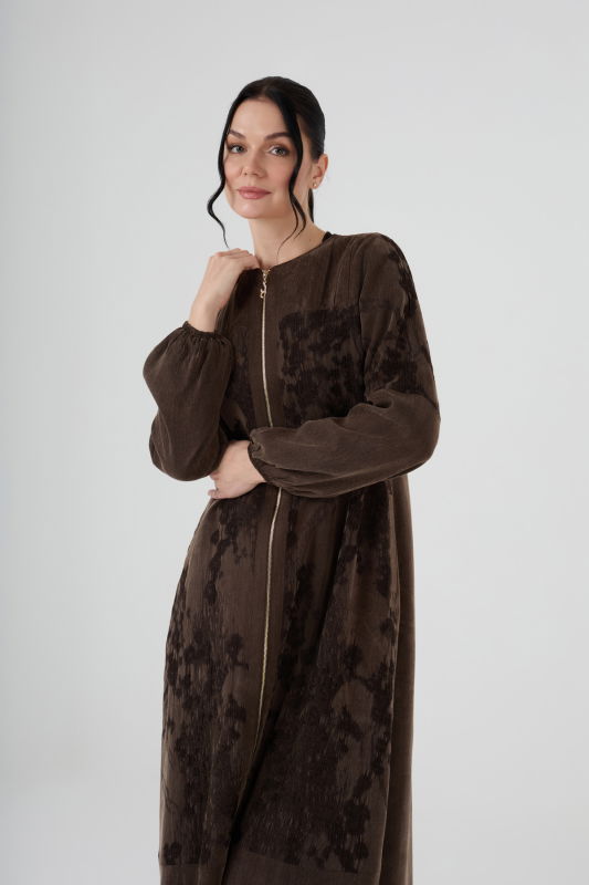 Bambuk Jakar Fermuarlı Astarlı Ferace KAHVERENGİ