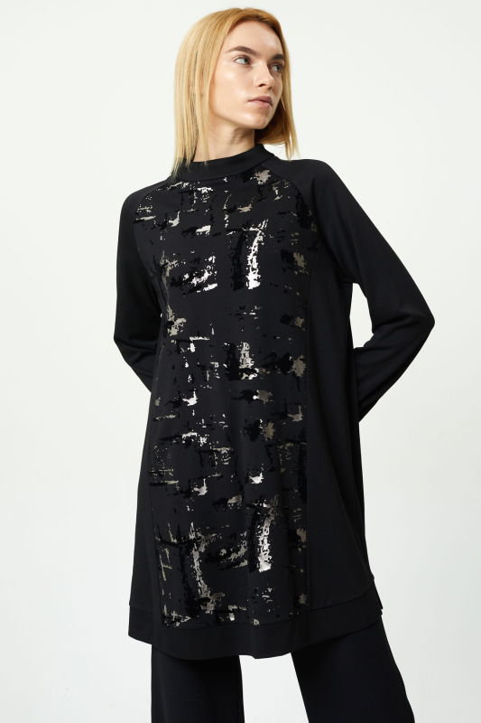 Jakar Detaili Fermuarlı Örme Tunik SİYAH