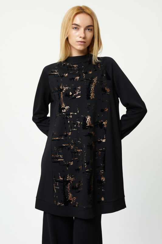 Jakar Detaili Fermuarlı Örme Tunik SİYAH