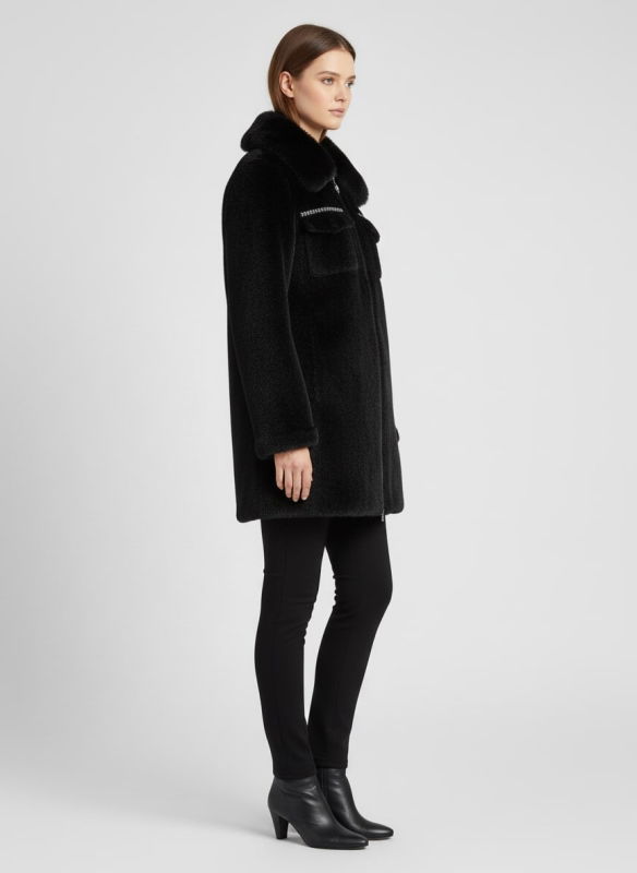 Fermuarlı Kapşonlu Angora Kaban SİYAH