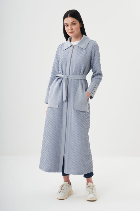 Jakarlı Fermuarlı Kap GRİ-SİYAH
