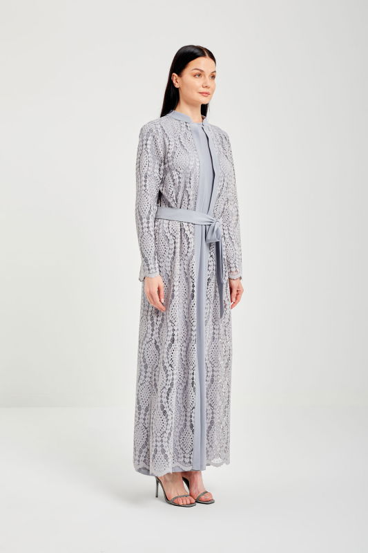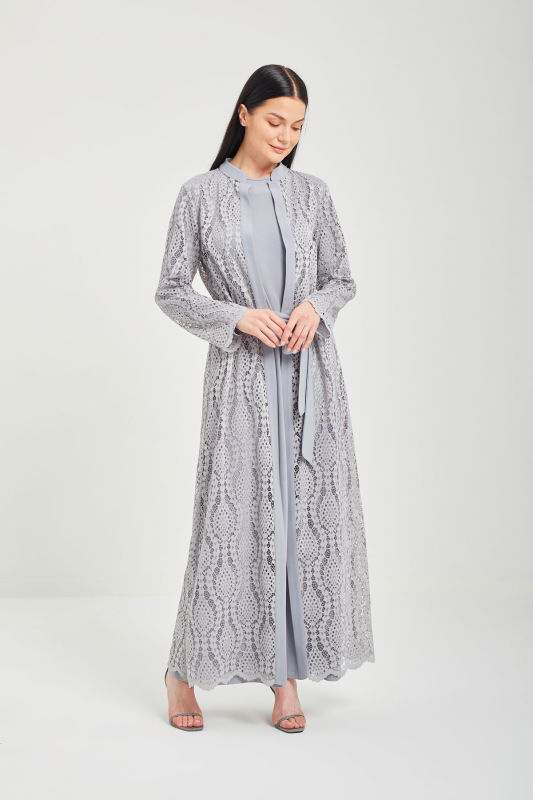 Dantelli Şik Abaya GRİ