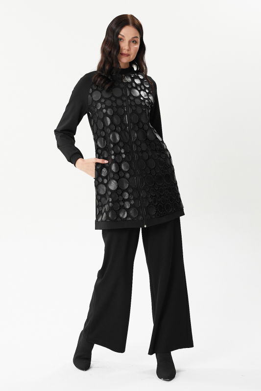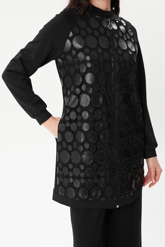 Deri Poantiyeli Fermuarlı Ceket SİYAH