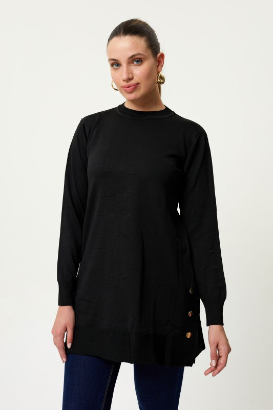 Düğme Detaili Uzun Kollu Triko SİYAH
