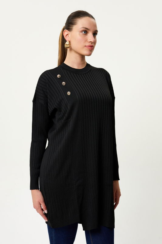 Düğme Detaili Triko SİYAH