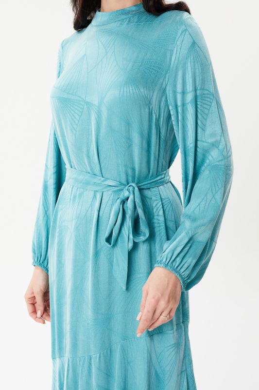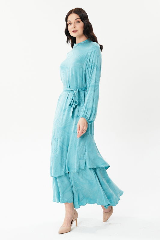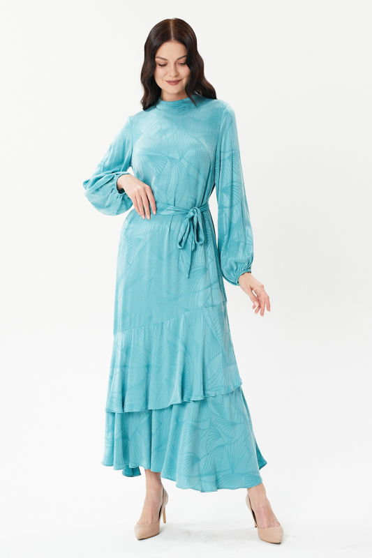 Etek Fırfırlı Kuşaklı Elbise MİNT