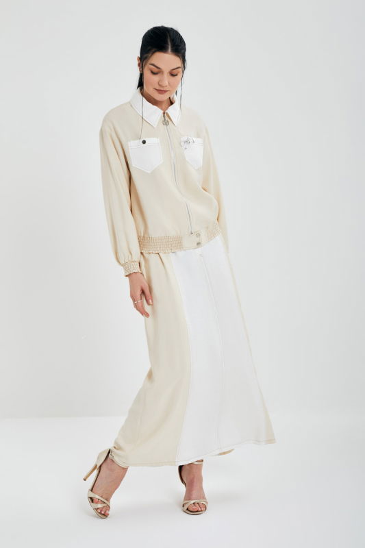 Fermuarlı Ceket Etekli Takım BEJ-EKRU