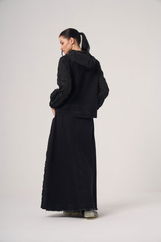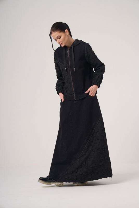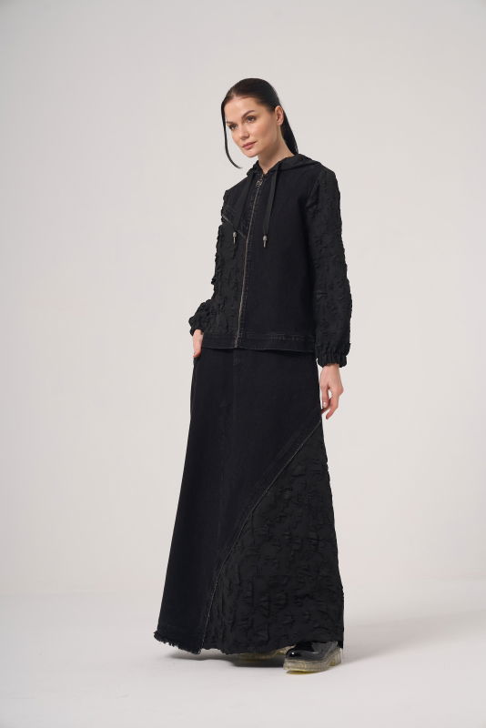 Fermuarlı Ceket Jakar Detaili Kot Takım SİYAH