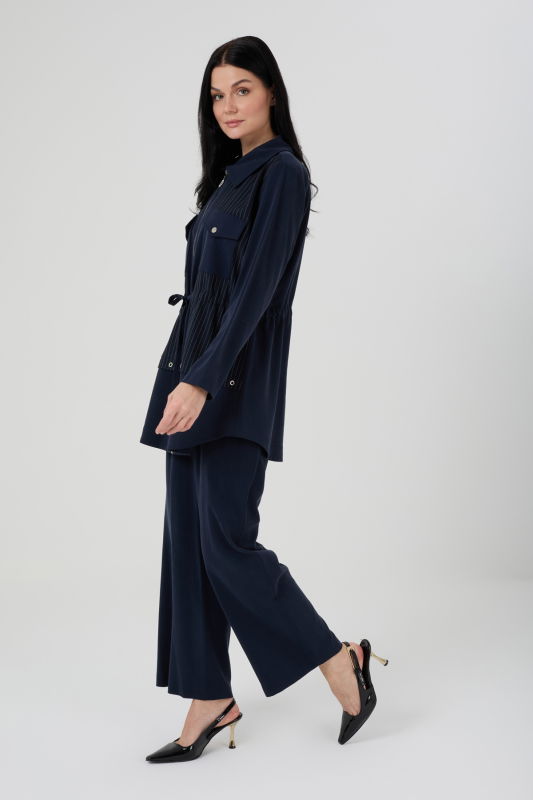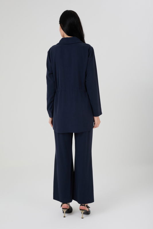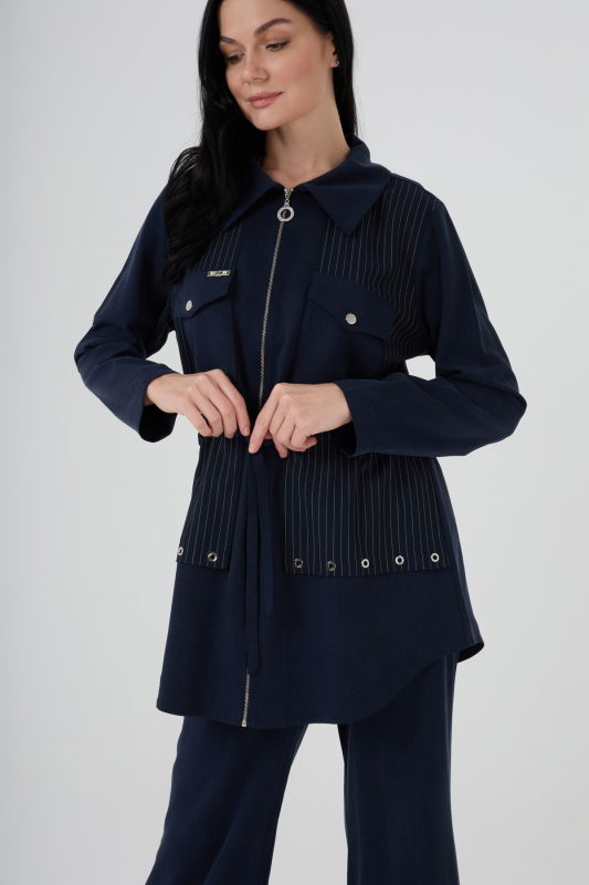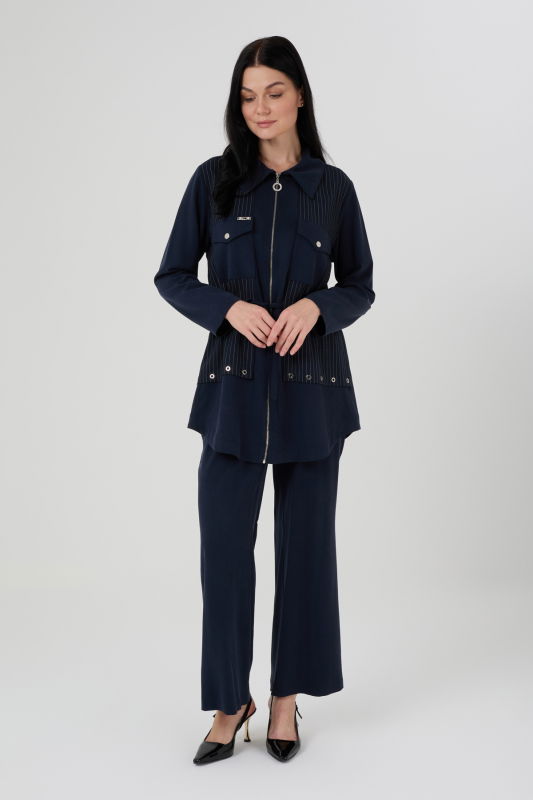 Fermuarlı Cepli Çizgili Detaili takım LACİVERT