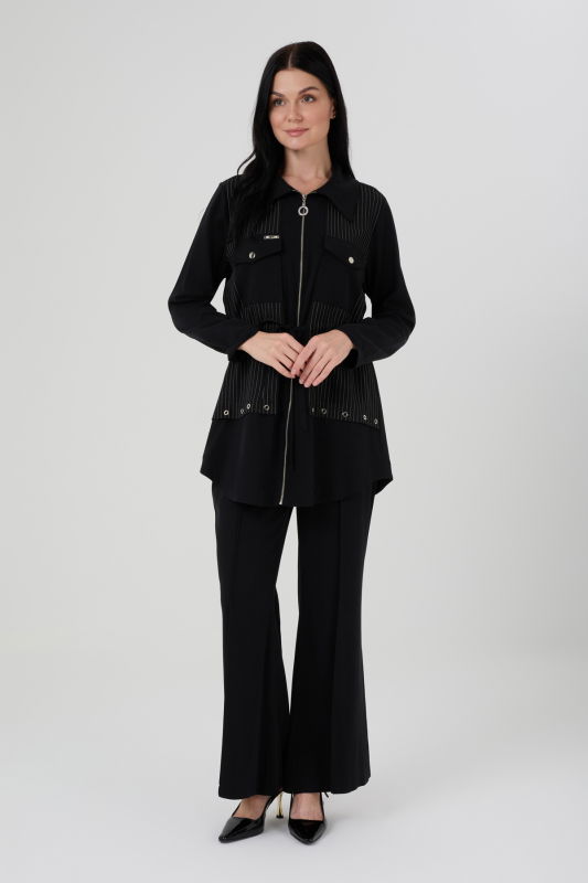 Fermuarlı Cepli Çizgili Detaili takım SİYAH