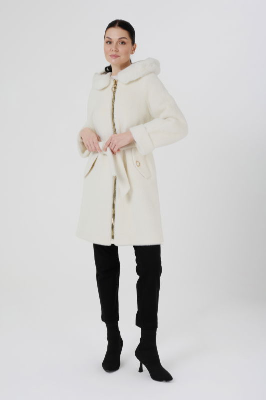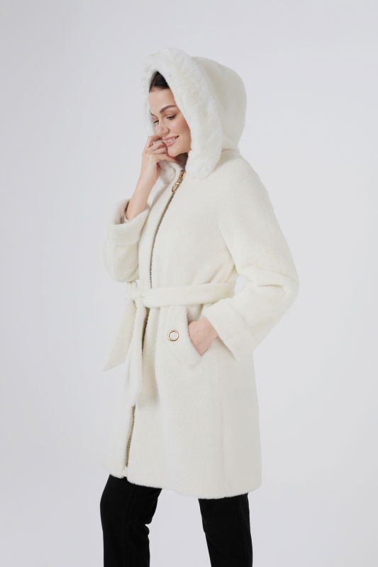 Fermuarlı Kapşonlu Angora Kaban BEJ