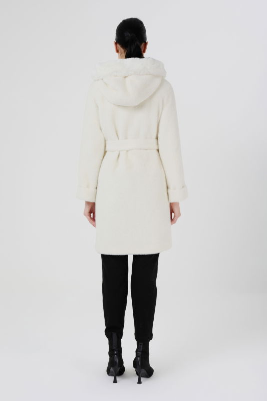 Fermuarlı Kapşonlu Angora Kaban EKRU