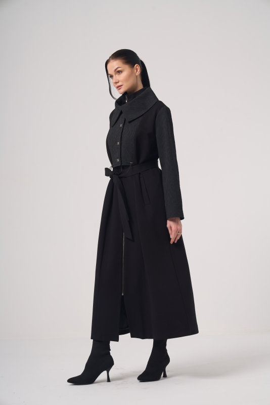Jakarlı Fermuarlı Kap GRİ-SİYAH