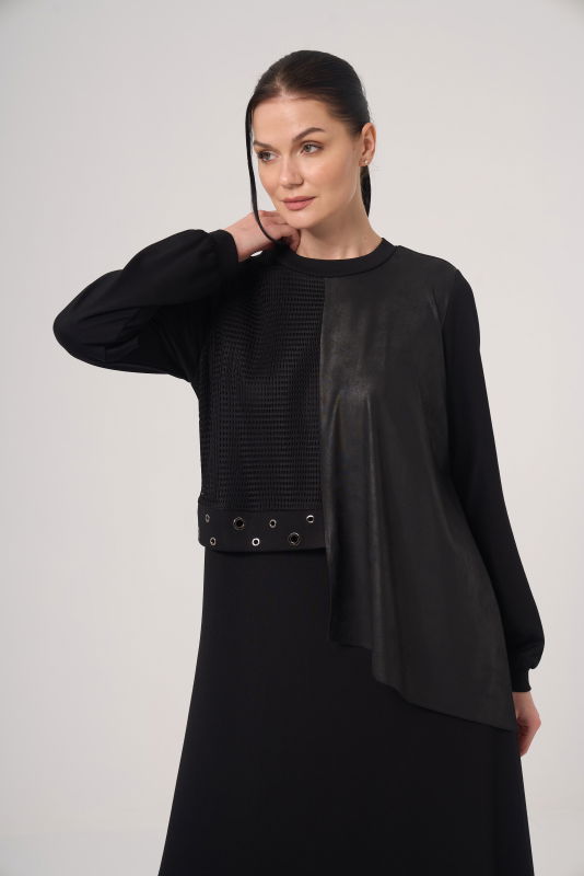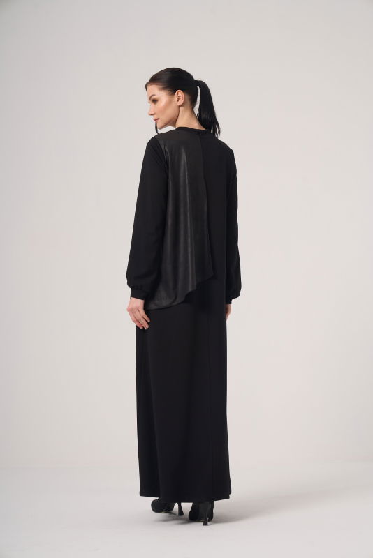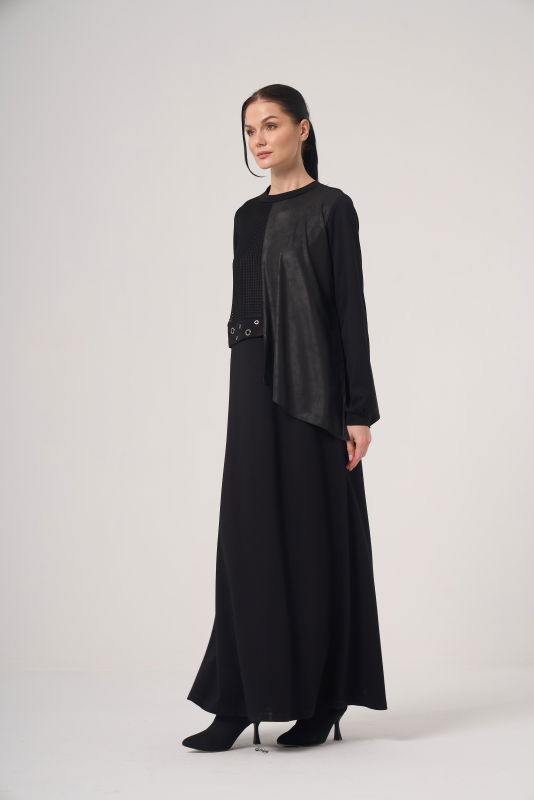 Deri Detaili Örme Elbise SİYAH