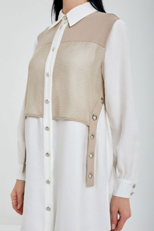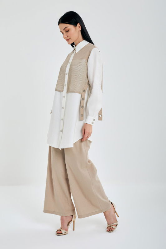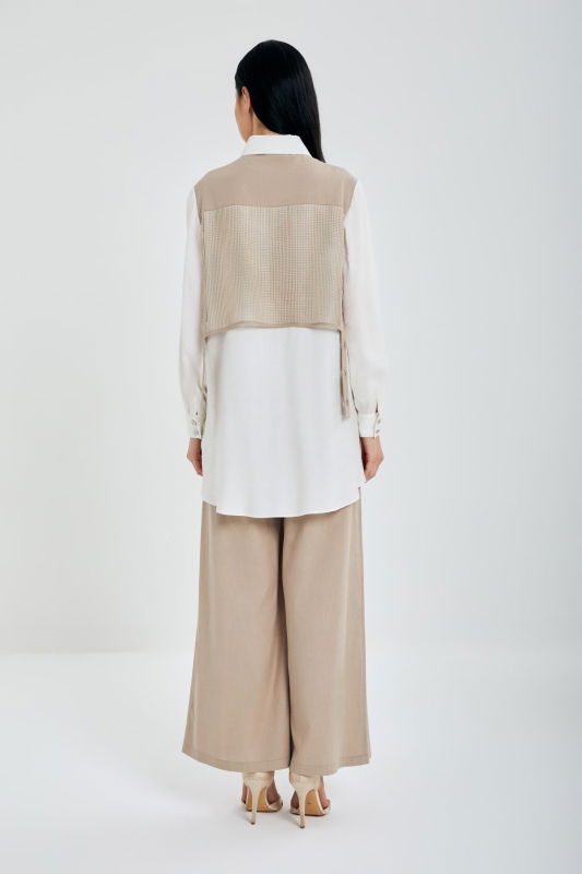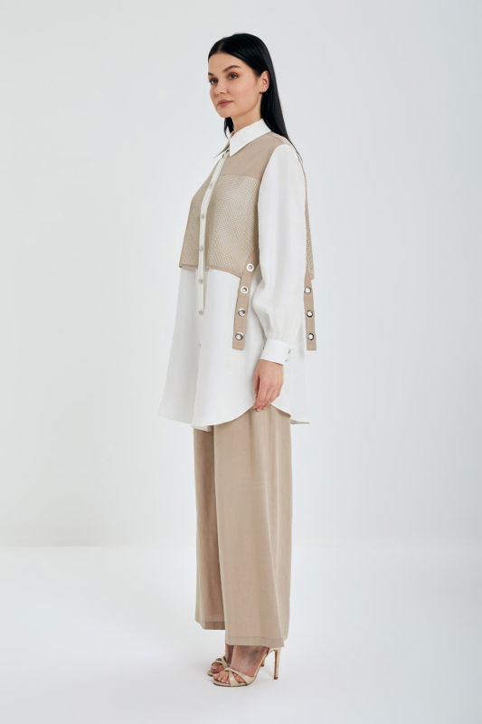 File Detaili Kuşgözlu Keten Takım EKRU-VİZON