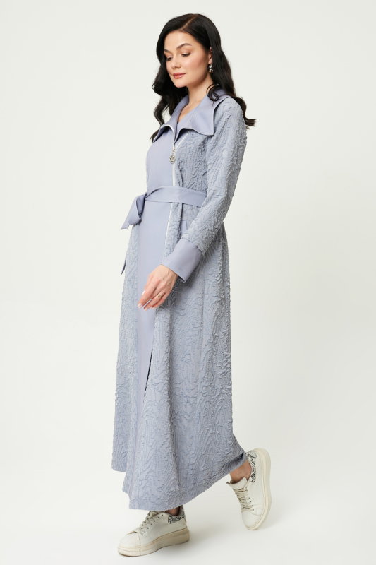 Jakarlı Fermuarlı Kap GRİ-SİYAH