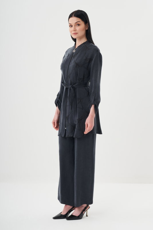 Örme Jakar Detaili Fermuarlı Takım SİYAH