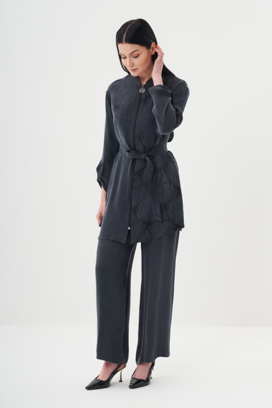 Fermuarlı Cep Detaili İkili Takım KAHVERENGİ
