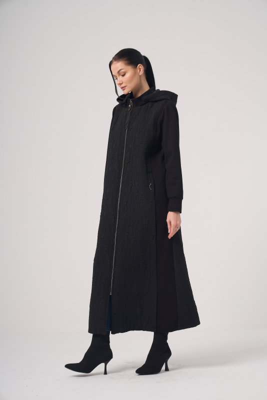 Jakarlı Fermuarlı Kap LACİ-SİYAH