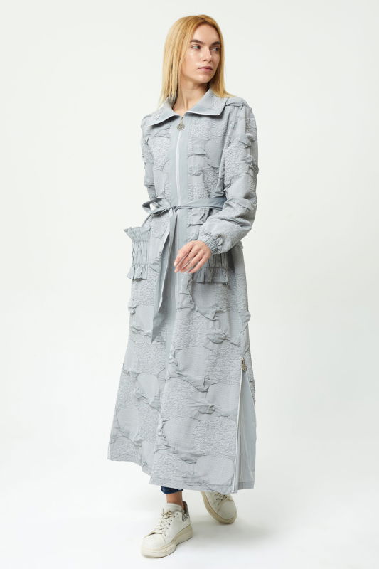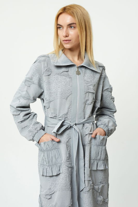 Jakarlı Taftalı Cep Kap GRİ