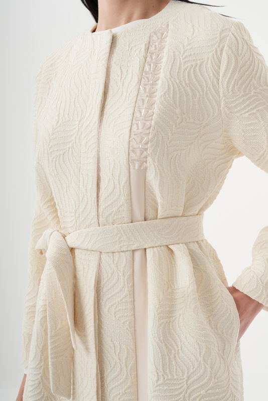 Jakarli Taş Detayli Kap KREM