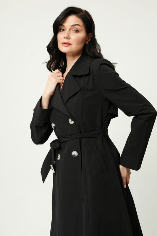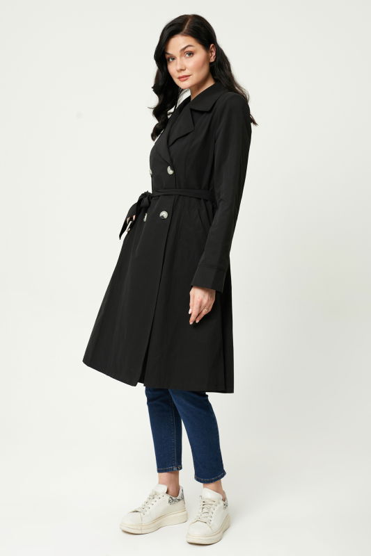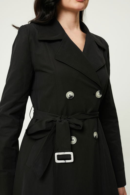 Çift Yakalı Kemerli Trench SİYAH-TAŞ