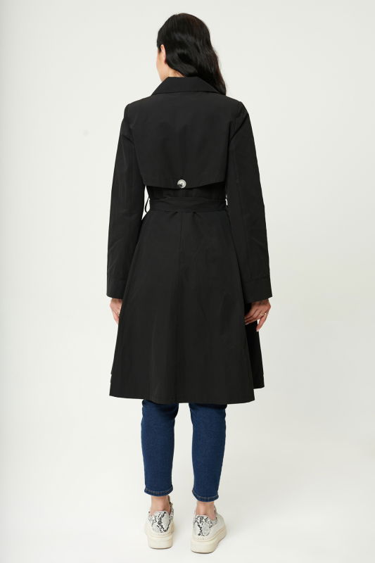 Kloş Etek Kemerli Trench SİYAH