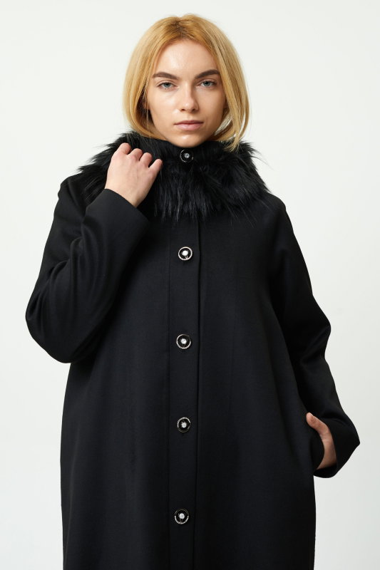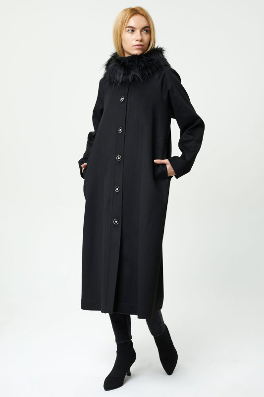 Fermuarlı Kapşonlu Angora Kaban SİYAH