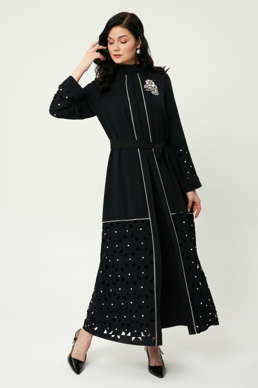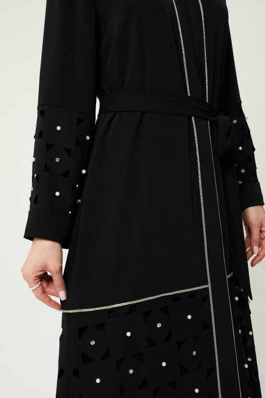 Lazerlı İncili Taşlı Şik Abaya SİYAH