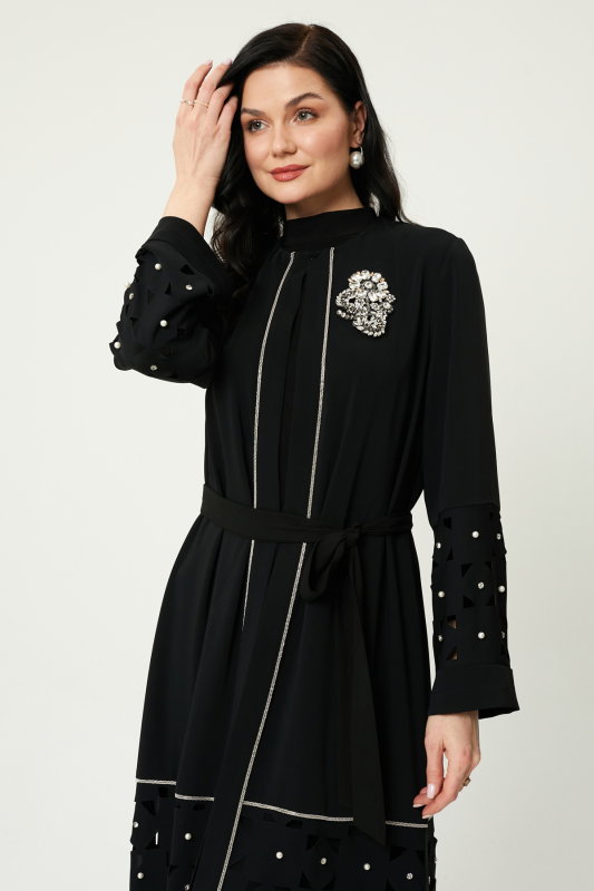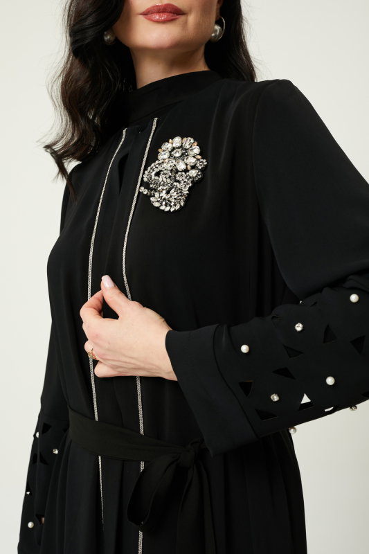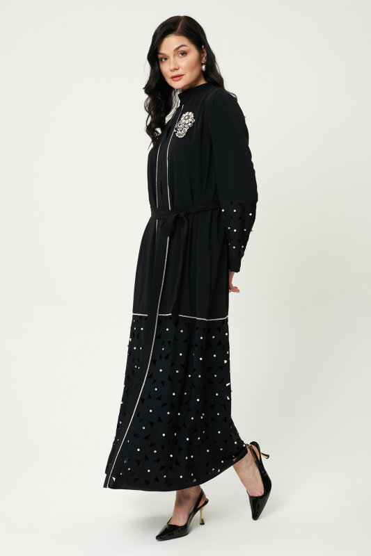 Taşlı İncili Şik Abaya SİYAH