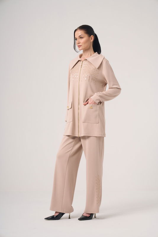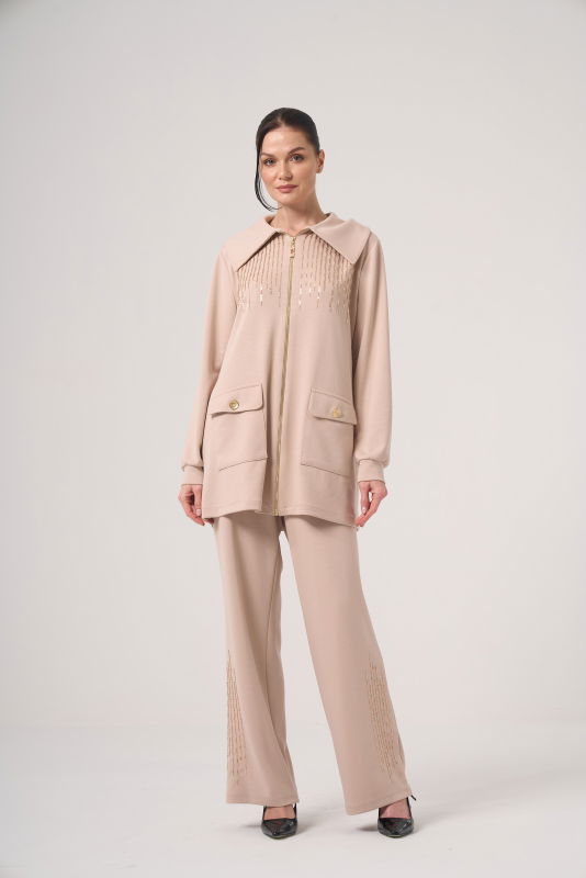 Nakışlı Cepli İkili Takım BEJ