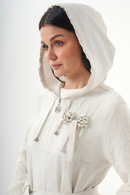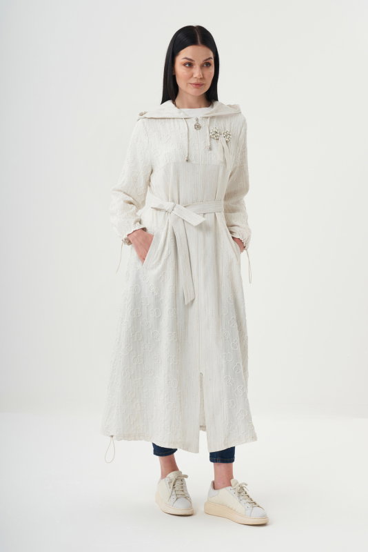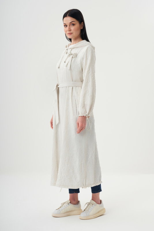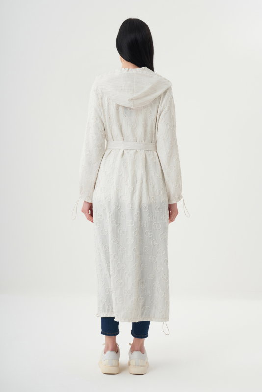 Jakarlı Kapşonlu Fermuarlı Kap LACİVERT