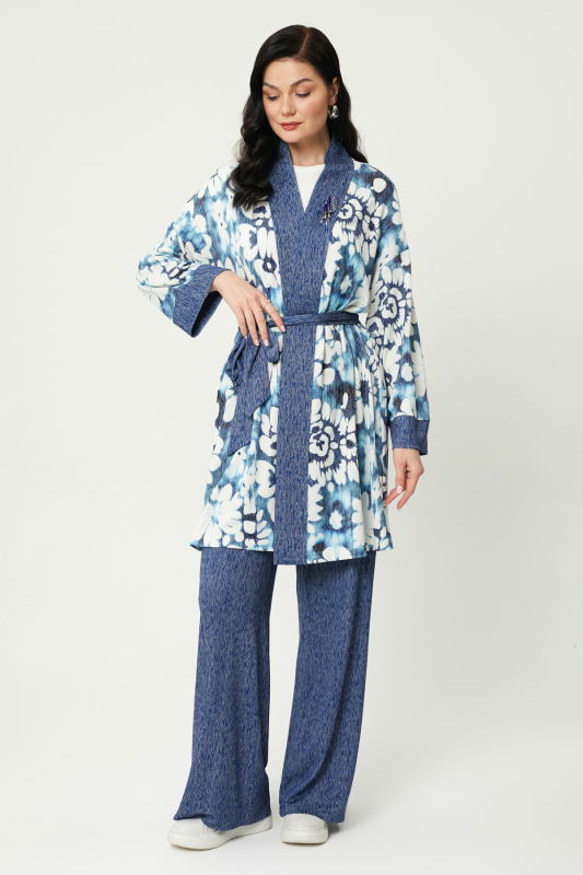 Örme Çiçekli Desen İkili Takım İNDİGO
