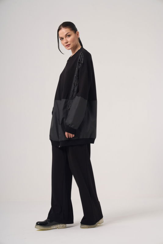 Örme Jakar Detaili Fermuarlı Takım SİYAH