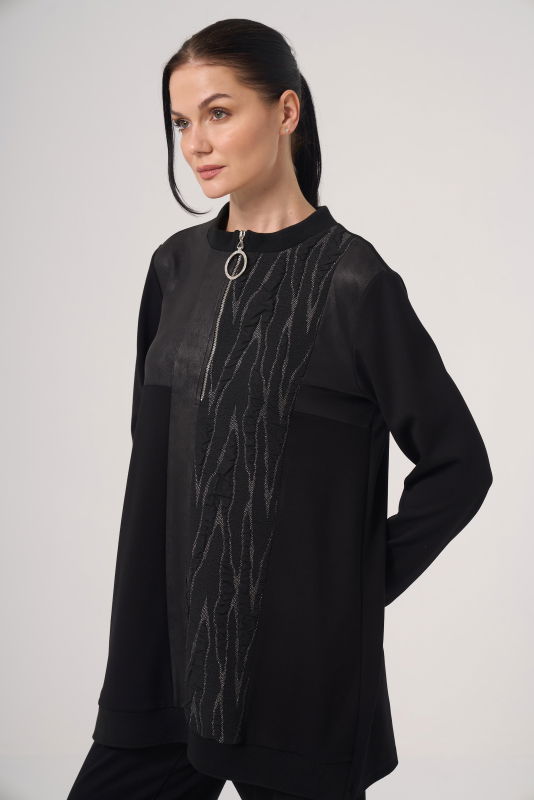 Örme Jakar Detaili Fermuarlı Takım SİYAH
