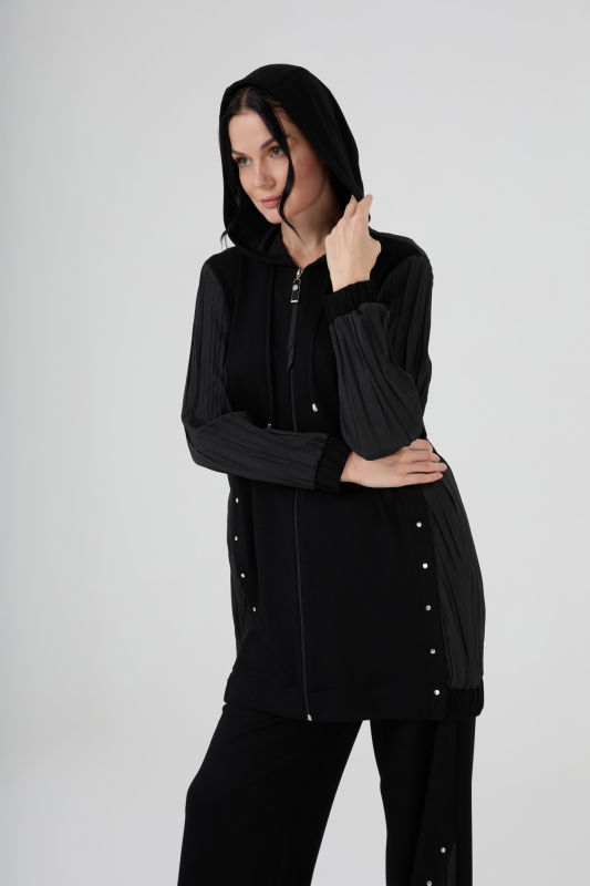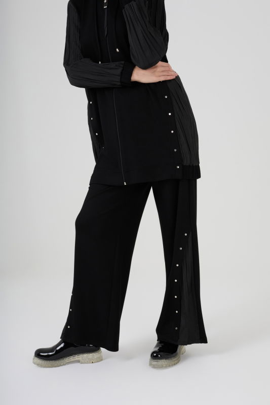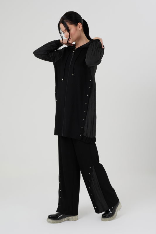 Piliseli Fermuarlı Örme Takım SİYAH
