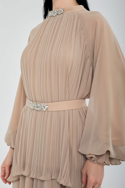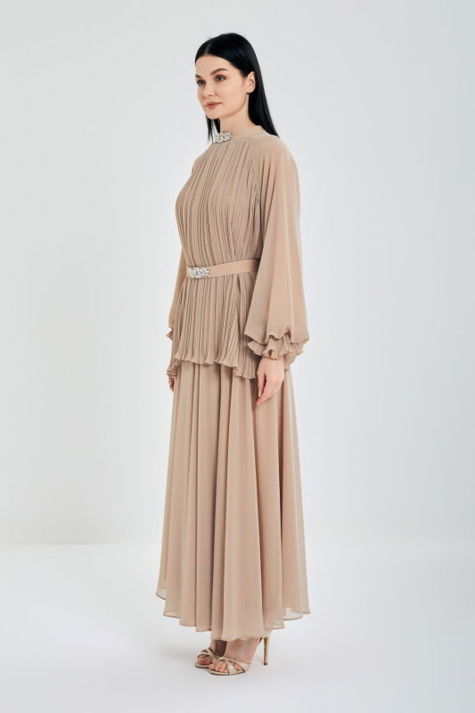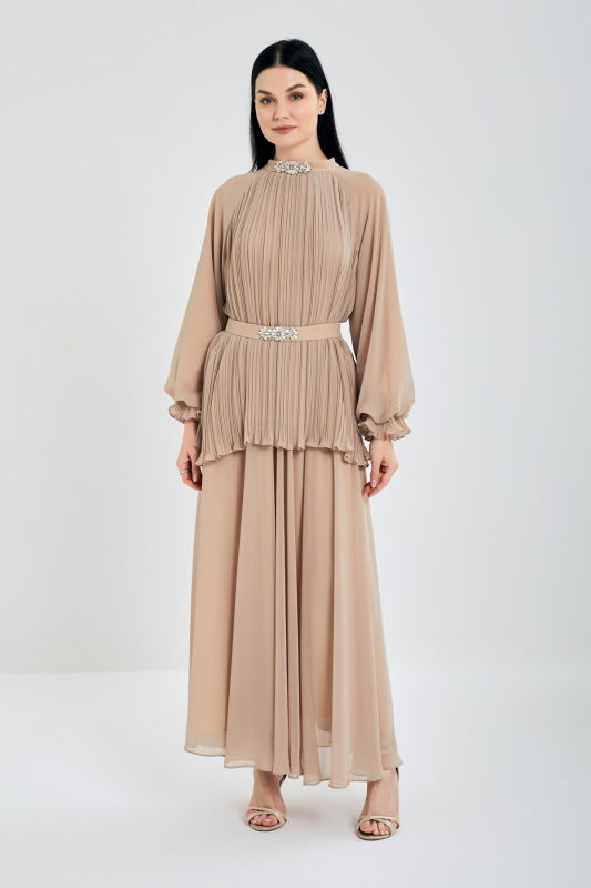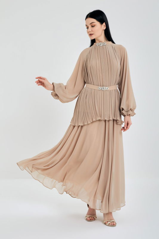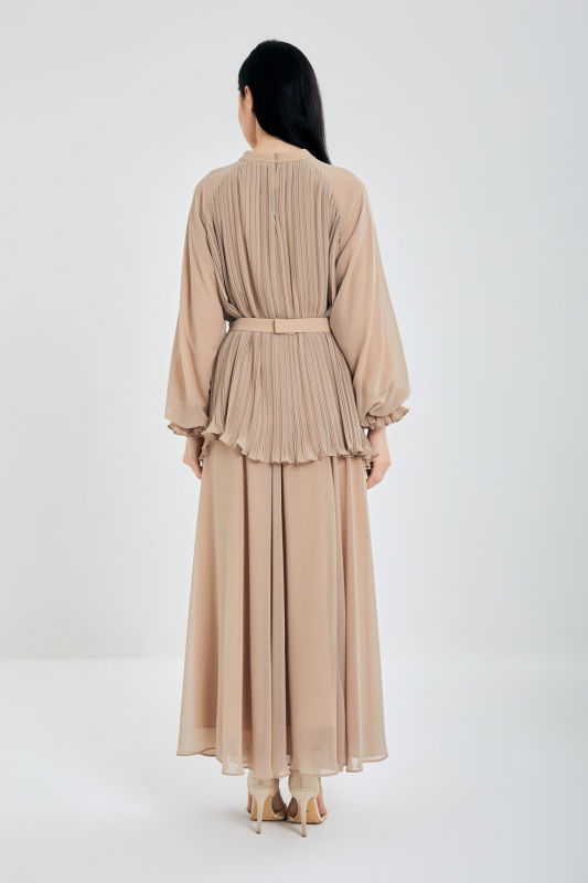 Piliseli Tunik Şifonlu Takım BEJ
