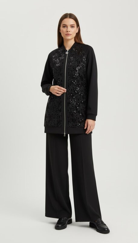 Jakarlı Kol Lastikli Payet Detaili Ceket SİYAH