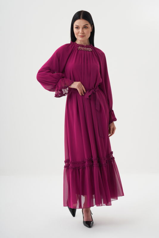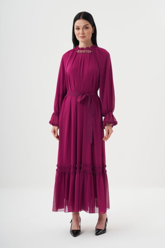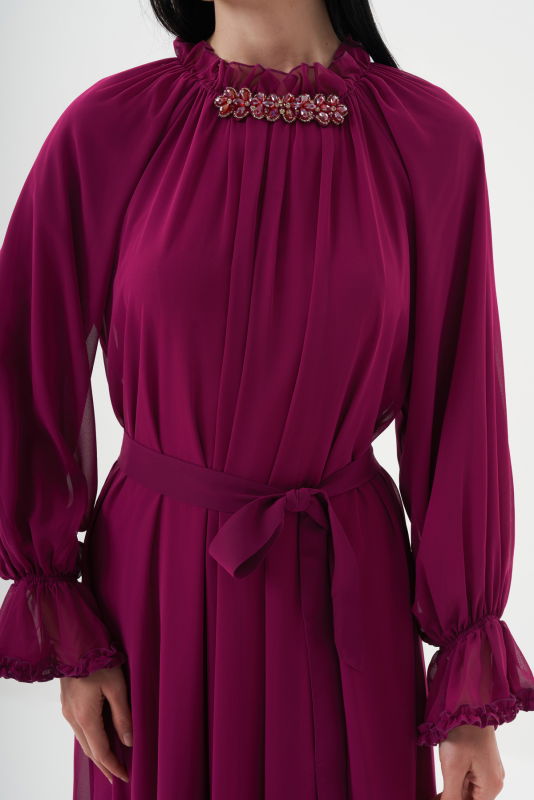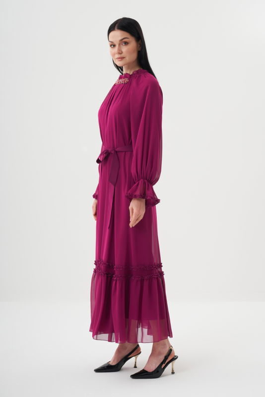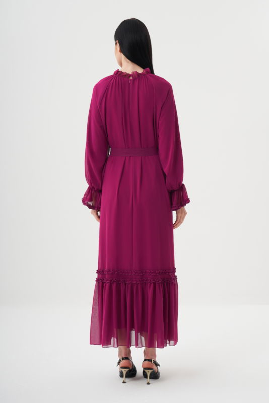 Şifon Firfirli Elbise BORDO