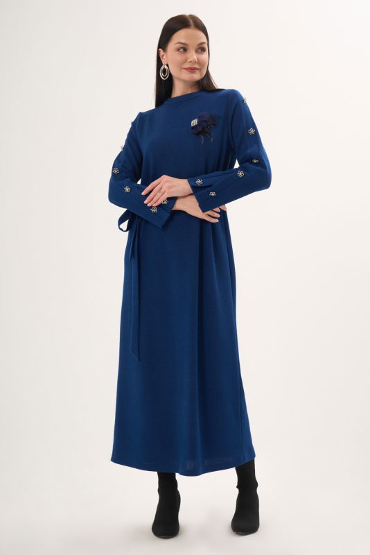 Triko Düğme Detaili Elbise LACİVERT