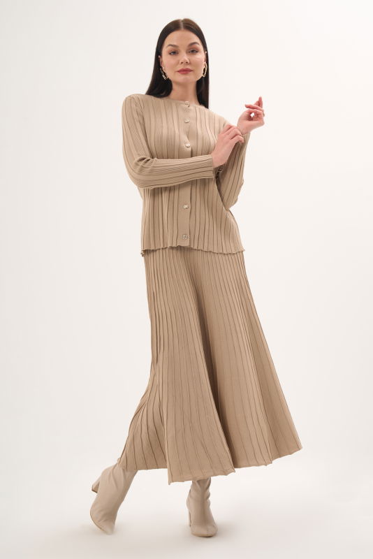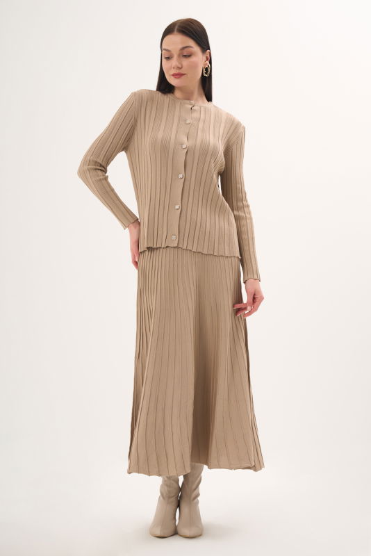 Fermuarlı Cep Detaili İkili Takım KAHVERENGİ