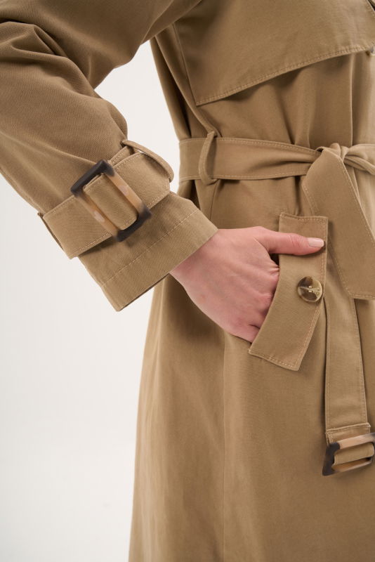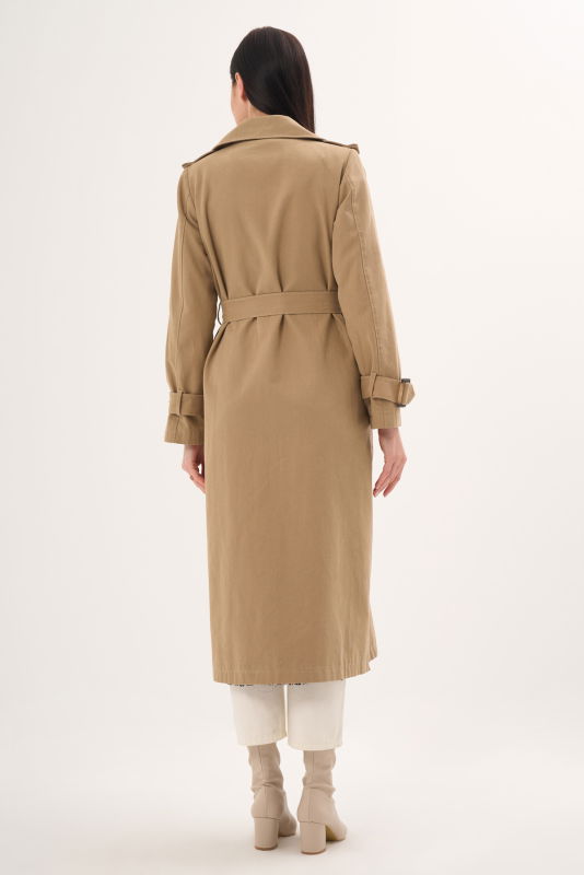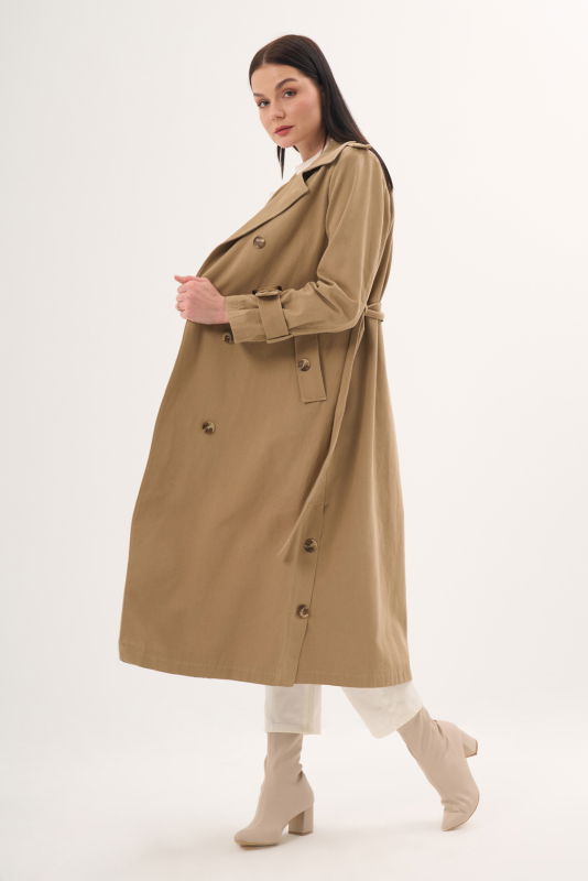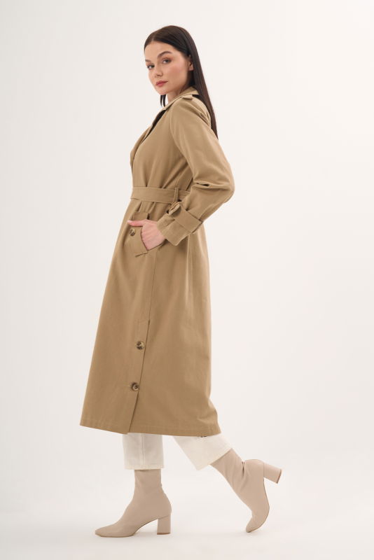 Yanı Yırtmaçlı Düğmeli Trench CAMEL